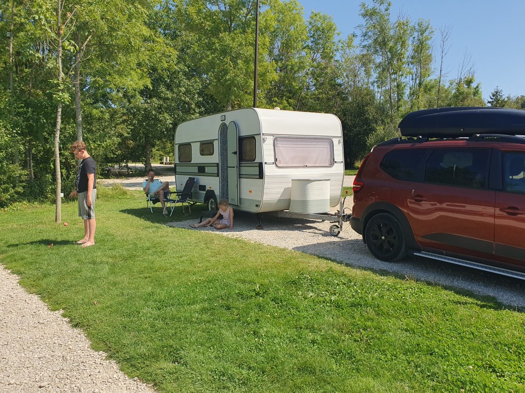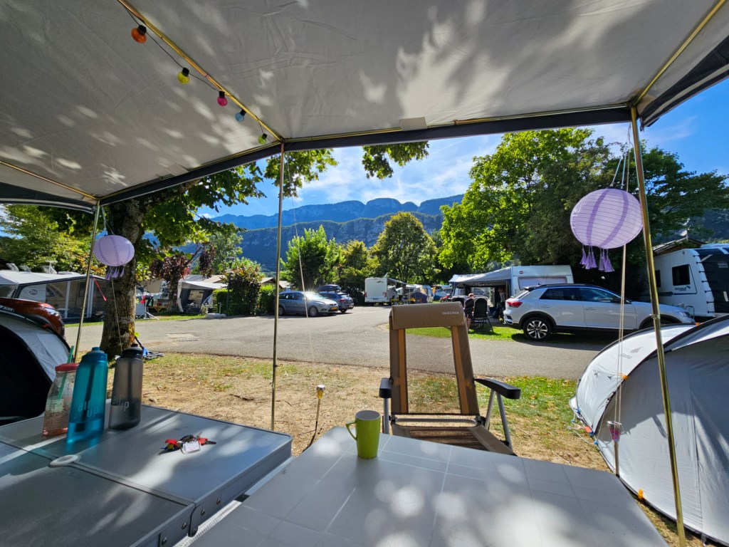 Eenmaal aangekomen op Camping La Ravoire parkeerden we de caravan en begonnen we met het uitpakken en opzetten van de luifel en twee kleine tentjes voor de kinderen. We hadden een prachtige plek met uitzicht over de camping en de bergen. De camping is klein en overzichtelijk, wat vooral voor Jurre ideaal is. Jurre, altijd nieuwsgierig, ging meteen op onderzoek uit. De speeltuin was aan de andere kant van de camping, dus hij moest wel een stukje lopen. We moesten leren los te laten en vertrouwen te hebben dat hij niet zou verdwalen. De camping heeft een leuk zwembad met twee glijbanen, naast de speeltuin. Gelukkig was er een hek om het zwembad, zodat de kleintjes niet zomaar bij het water konden komen. Jurre is bezig met zijn A-diploma, dus je laat hem niet onbeheerd achter bij het water. Ook al was het zwembad niet diep en kon Jurre er gewoon staan, je laat hem toch niet alleen.